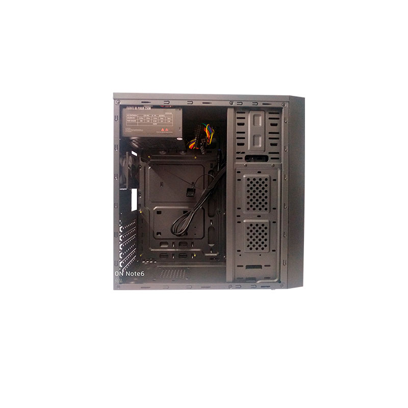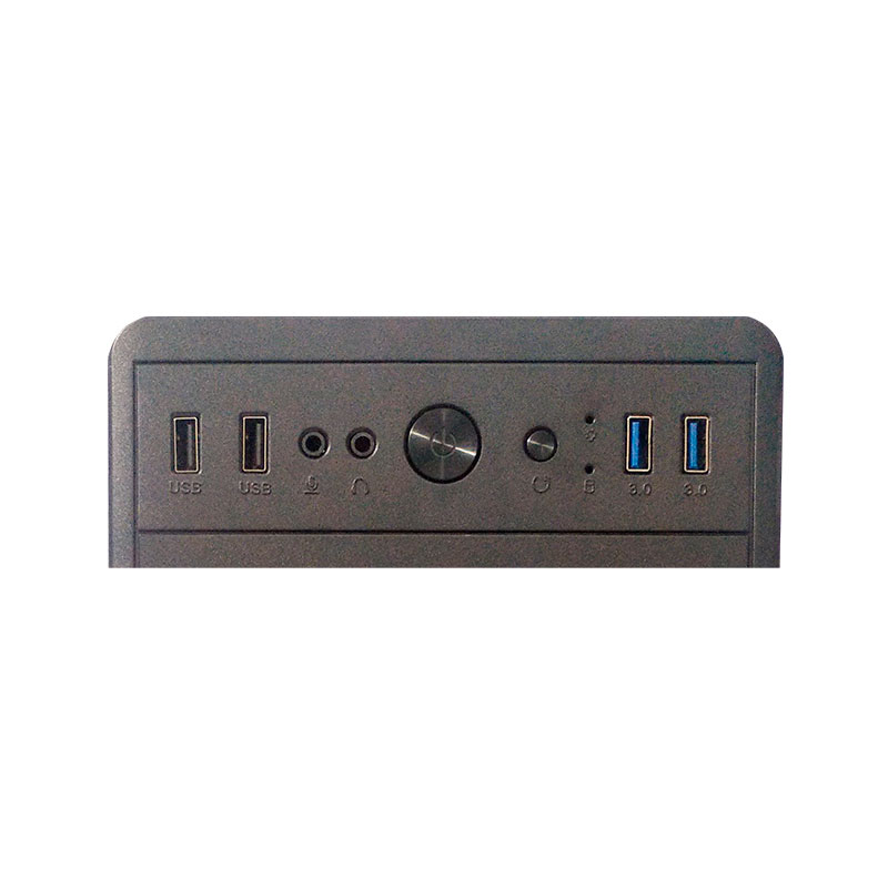 1 conector 24/20 pines, 1 conector EPS 12V 4 pines, 2 conectores SATA, 2 conectores periféricos, USB 2.0 x2 , USB 3.0 x 2, Audífono y microfono, fan posterior 8 cm.
