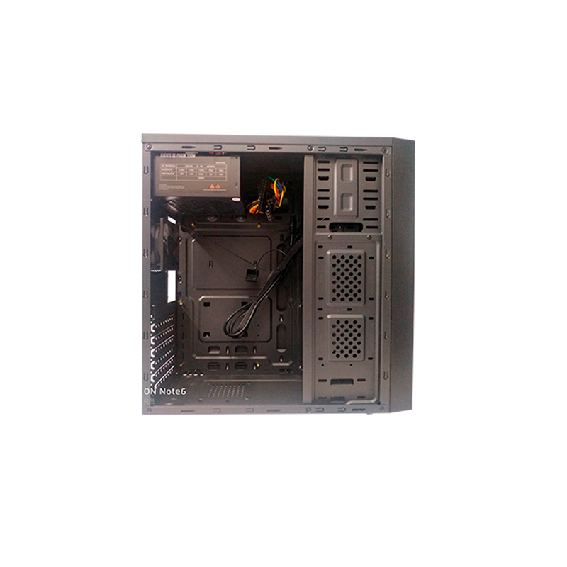 1 conector 24/20 pines, 1 conector eps 12v 4 pines, 2 conectores sata, 2 conectores periféricos, usb 2.0 x 2 , usb 3.0 x 1, audífono y microfono, fan posterior 8 cm.